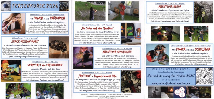 * bei den Ferienkursen: Nachmittagsbetreuung bis 15.00 Uhr möglich |