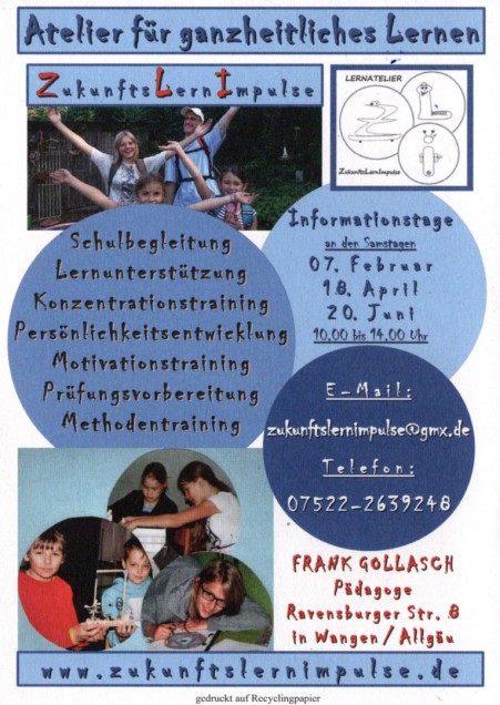 | 18. April | 10.00-14.00 | Informationstag des Lernateliers ZLI | |