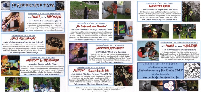 Für die Anmeldung zum Ferienkurs kann das KONTAKTFORMULAR genutzt werden.